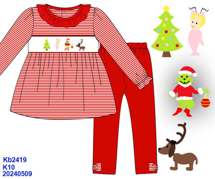 Santa Cutie Smocked Girls Set